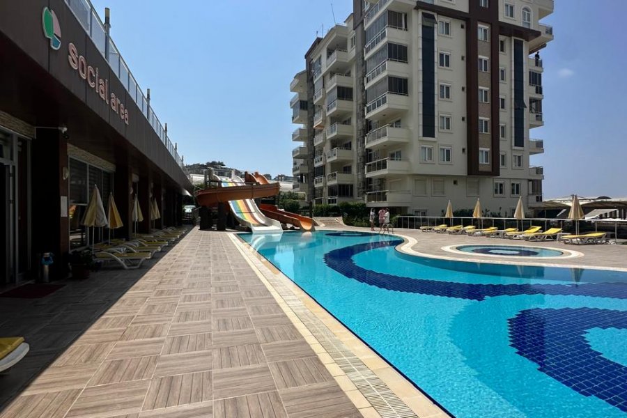 Расположенная на верхнем, 6-м Этаже (6/6) 6-этажного здания, эта квартира выделяется большим жилым пространством и 2 Балконами. Несмотря на 2014 Год Постройки, она находится в хорошем состоянии и имеет Разрешение На Заселение (Iskan). Она находится всего в 900 Метрах До Моря и предлагает жителям доступ к Частному Пляжу.