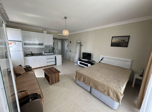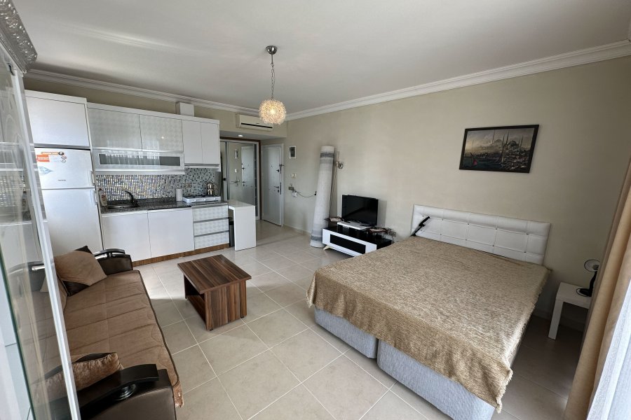 Omim Residence – Эта квартира-студия (1+0) расположена в элитном и спокойном районе Каргыджак, всего в нескольких шагах от пляжа. Квартира на 5-м этаже продается полностью меблированной и является отличным вариантом как для отдыха, так и для инвестиций с высокой доходностью.