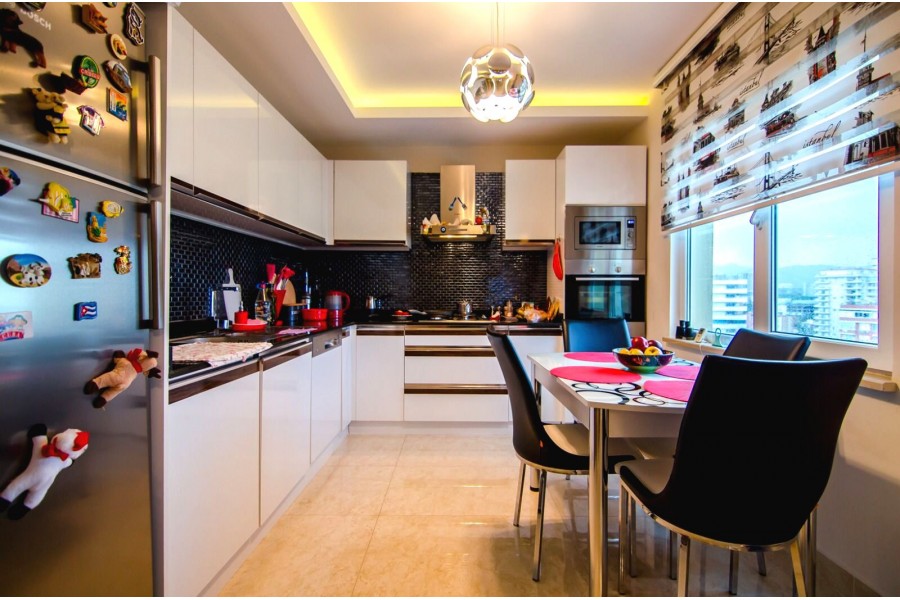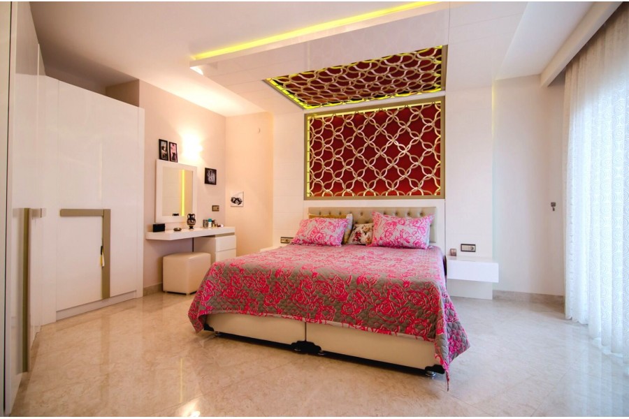 Alanya Mahmutlarda Atatürk Caddesi üzerinde Pamfilia Residence'de Satılık Dubleks Daire, 10 katlı binanın 10. katında, 3+1, 180 m2, Güney cephe, Geniş Balkon ve teraslı, Full Lüks Eşyalı, Satılık daire Panfilya residence Alanya Mahmutlar.